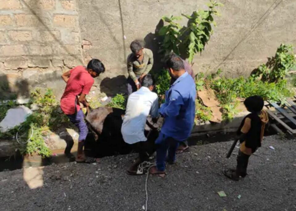 જસદણના ખાડિયા વિસ્તારની ખુલ્લી ગટરમાં ગાય ખાબકી, ગૌસેવકોએ મહામહેનતે બચાવી