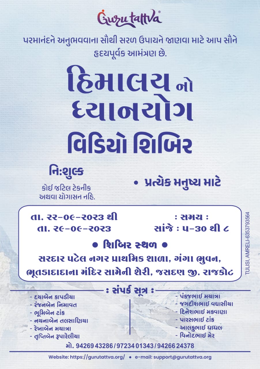 જસદણજસદણમાં આવતીકાલે યોજશે હિમાલયનો ધ્યાનયોગ વિડિયો શિબિર by Rajesh LimbasiyaSeptember 21, 2023September 21, 20230 Share હિમાલયનો ધ્યાનયોગ વિડિયો શિબિર