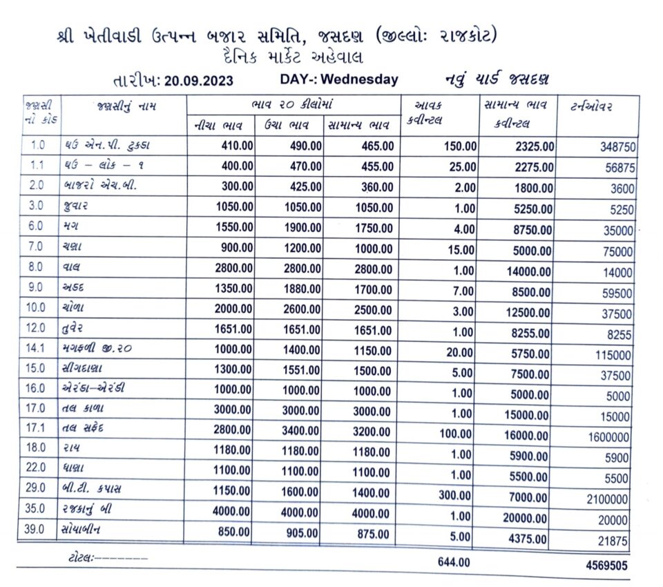 જસદણજસદણ માર્કેટિંગ યાર્ડ ભાવ તારીખ:/20/09/2023 by Rajesh LimbasiyaSeptember 20, 2023September 20, 20230 Share