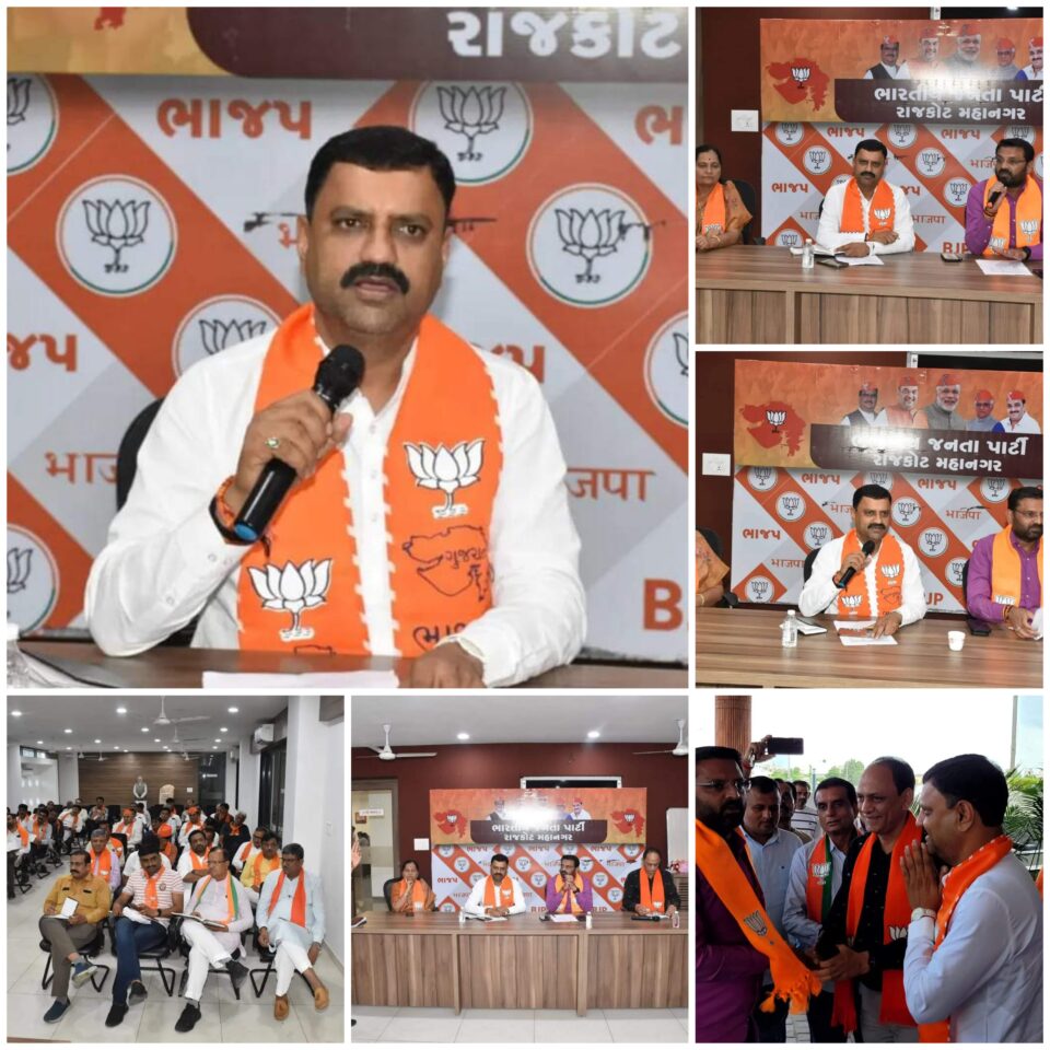 રાજકોટ મહાનગર ખાતે આગામી ૨૭ જુલાઈએ હીરાસર એરપોર્ટ લોકાર્પણ તથા ૨૨૦૦ કરોડના વિકાસ કાર્યોનું લોકાર્પણ માનનીય પ્રધાનમંત્રીશ્રી નરેન્દ્રભાઈ મોદી જીના હસ્તે થવાનું છે, જેના માટે કાર્યકર્તાઓ સાથે મિટિંગ યોજાય