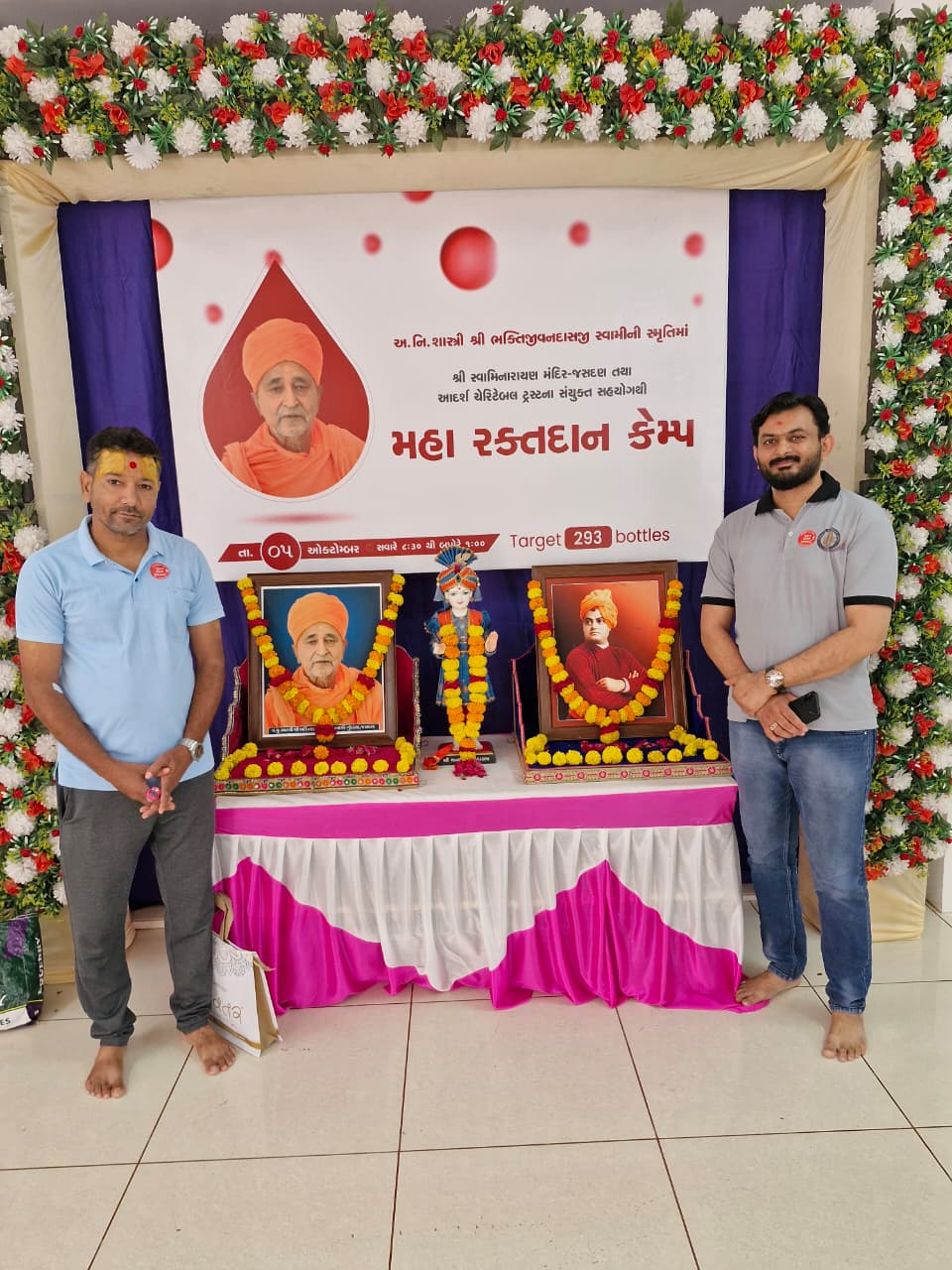 જસદણને કર્મભૂમિ બનાવી તેમાં સંસ્કારોનું ચિંતન કરનાર નિર્મળ સરળ અને પ્રેમાળ અ. નિ.શાસ્ત્રી શ્રી ભક્તિજીવનદાસજી સ્વામીની સ્મૃતિમાં આદર્શ ચેરીટેબલ ટ્રસ્ટ અને શ્રી સ્વામિનારાયણ મંદિર જસદણ ના સંયુક્ત ઉપક્રમે આયોજિત મહારક્તદાન કેમ્પમાં બહોળી સંખ્યા માં રક્તદાતાઓએ હાજરી આપી અને શ્રદ્ધાંજલિ આપવાનો પ્રયાસ કર્યો છે ત્યારે જસદણના પ્રજાજનોએ આ રક્તદાન કેમ્પમાં લાભ લઇ અને એક સેવાનું ઉદાહરણ રજૂ કર્યું છે