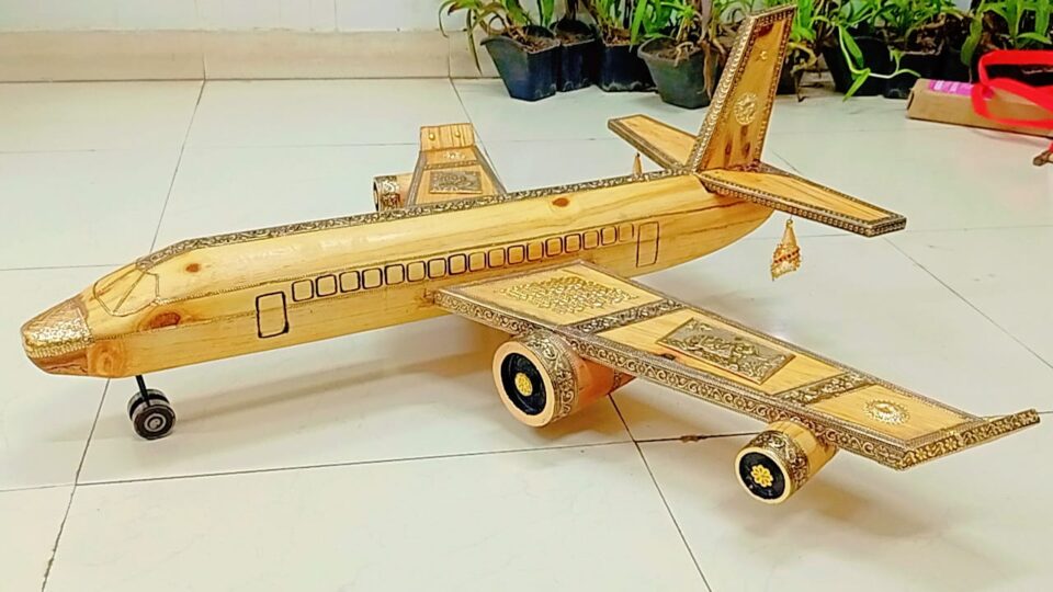 રાજકોટ આંતરરાષ્ટ્રીય ગ્રીનફીલ્ડ એરપોર્ટના લોકાર્પણ પ્રસંગને અનુરૂપ વડાપ્રધાને ભેટ આપી શકાય તે માટે જસદણના હેન્ડીક્રાફ્ટ વ્યવસાયિકો દ્વારા આ અઢી ફૂટના વિમાનની પ્રતિકૃતિને સજાવીને તૈયાર કરવામાં આવી છે. સૌ પ્રથમ જસદણના એન્ટિક વસ્તુઓના કારીગર દ્વારા મૂળ કાષ્ઠનું અઢી ફુટનું વિમાન બનાવવામાં આવ્યું હતું. તેમનું વજન ચાર કિલો આસપાસ છે એ પછી આ અઢી ફુટની સાઈઝના લાકડાના પ્લેન પર જસદણના હેન્ડીક્રાફ્ટના કારીગરો દ્વારા વિશિષ્ટ પતરાનું એમ્બોઝિંગ નો ઢોળ ચડાવવામાં આવ્યો હતો. એ પછીની ડાયમંડ અને મોતીની જ્વેલરી જડીને તેને શણગારવામાં આવ્યું છે.